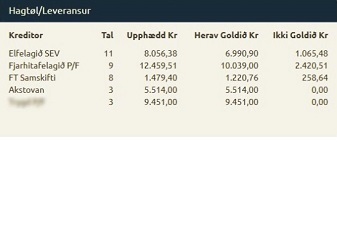 Hagtalsyvirlitið gevur tær eina samlaða mynd av hvussu tín støða er yvirfyri teimum ymsu kreditorunum.